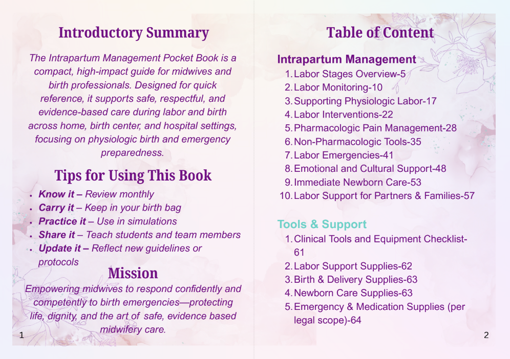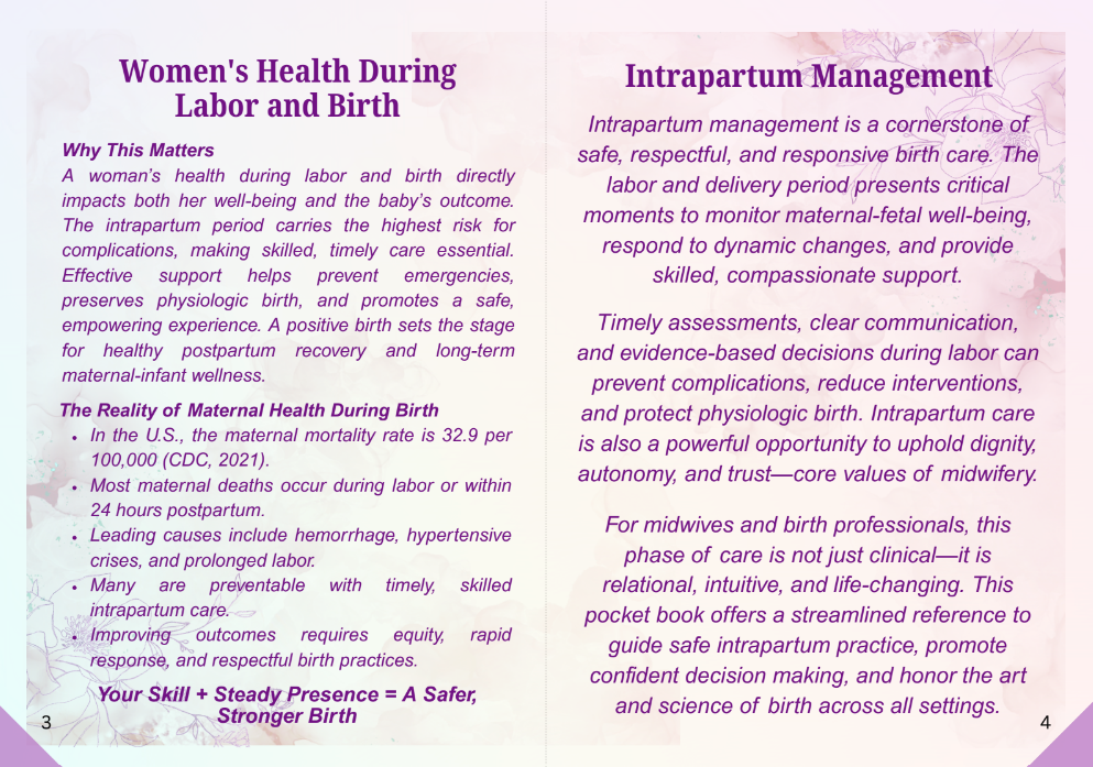 When labor begins, preparation and presence are everything. The Intrapartum Management Tips for Midwives Pocket Book is a 64-page essential reference created to support midwives in providing skilled, evidence-based care throughout every phase of labor and birth. From assessing progress and supporting physiological birth to recognizing variations and responding to complications, this guide helps you stay calm, organized, and ready for anything.