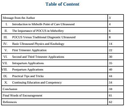 Point-of-care ultrasound is rapidly becoming a key component of modern midwifery and perinatal care. This 67-page guide brings essential skills, simplified instruction, and practical wisdom into one easy-to-use resource.